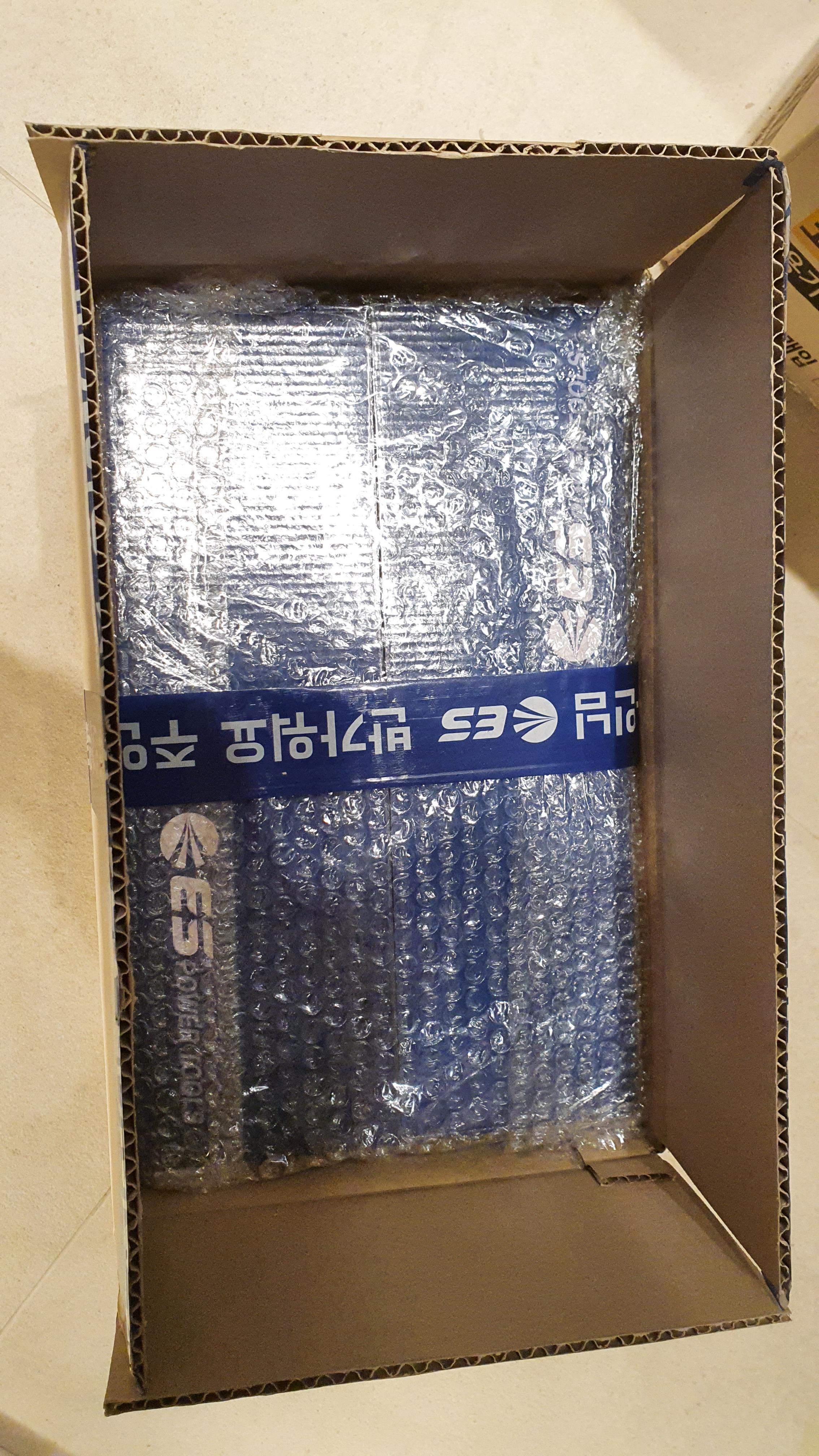 에어캡으로 둘러쌓인채 꼭 맞은 상자에 넣어서 배송된다.