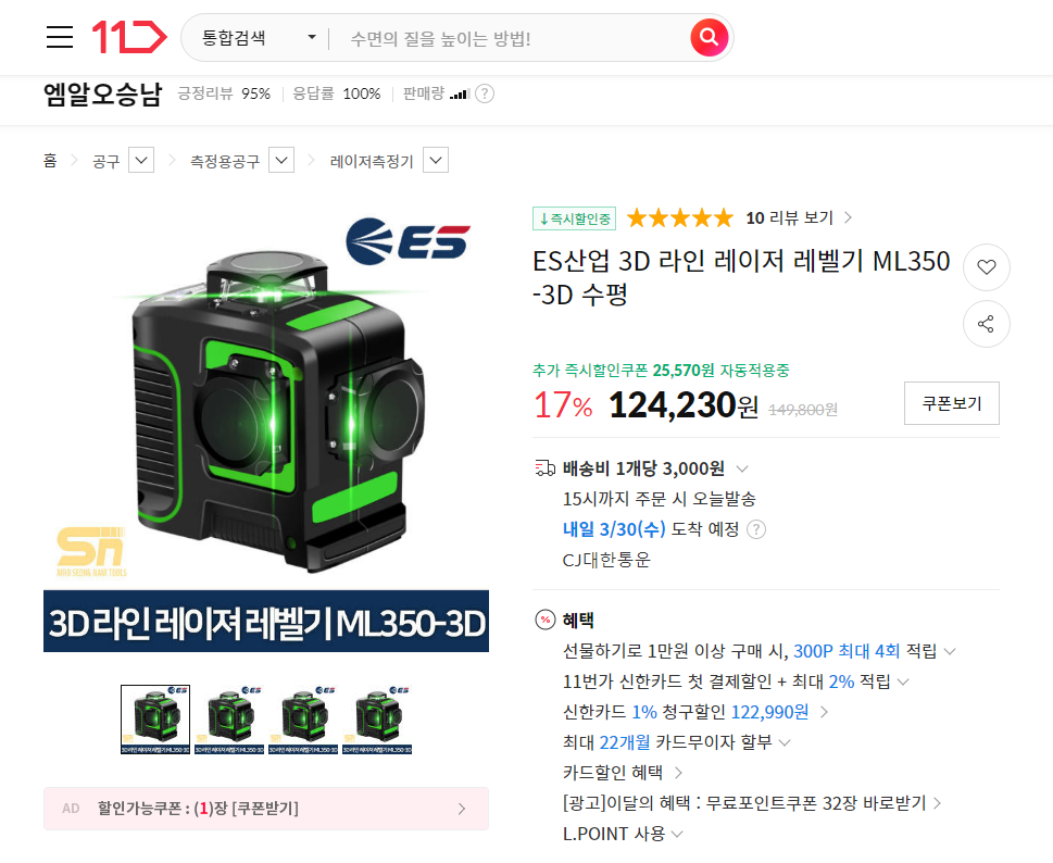 같은 모델을 다른판매자는 14만원~20만원 등에 판매중.
