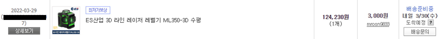 예정대로 결제 한 뒤 하루만인 3월 30일 배송받았다.