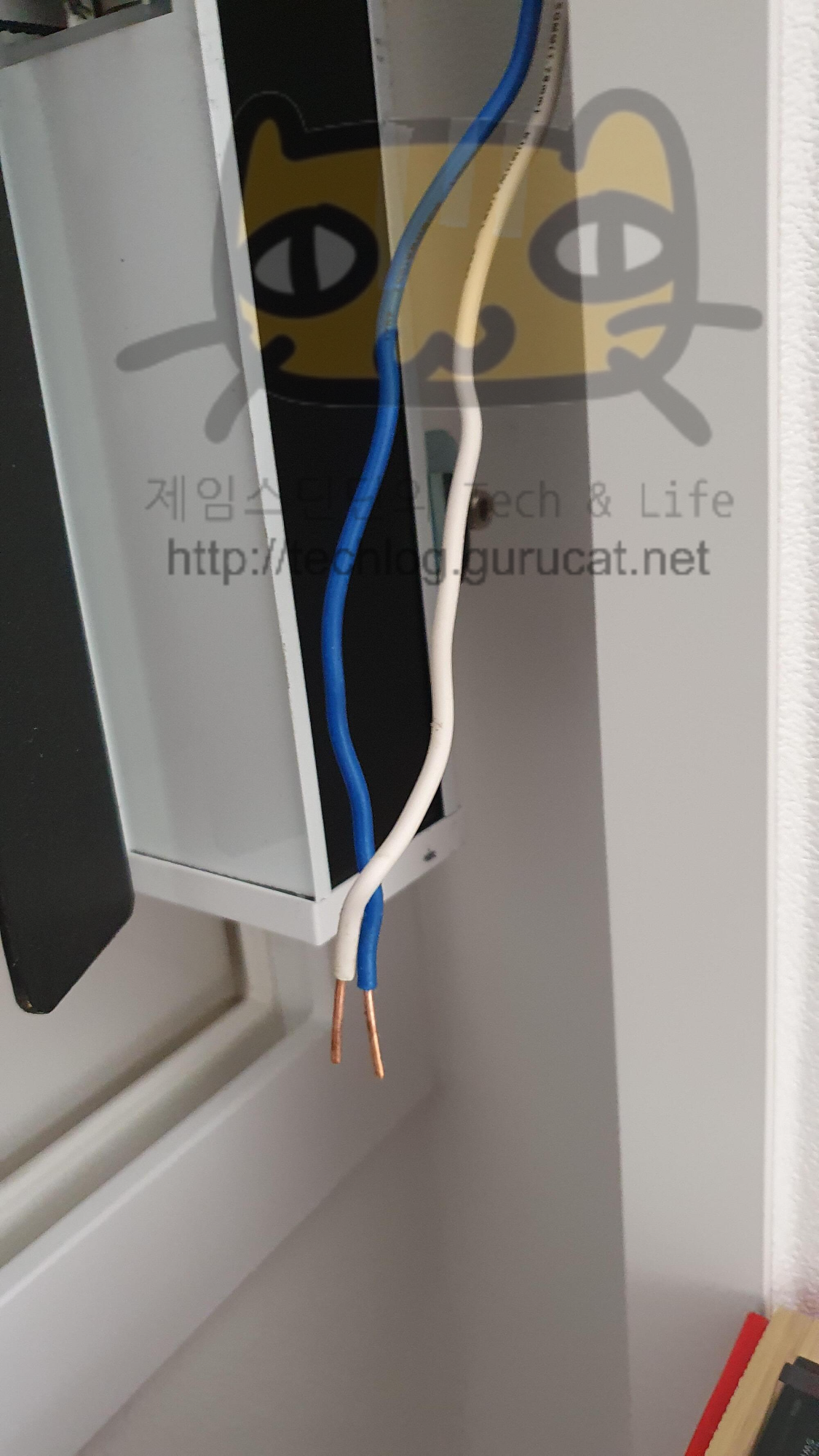 이때 반드시!!! 전기스위치는 내리고 피복을 벗겨야 한다.