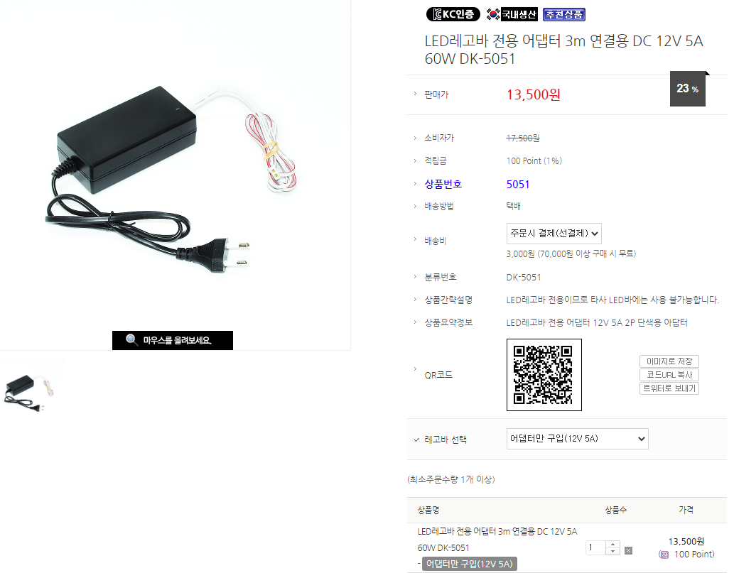 LED 어댑터 13,500원.