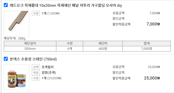 목재 및 수성스테인 32,000원.