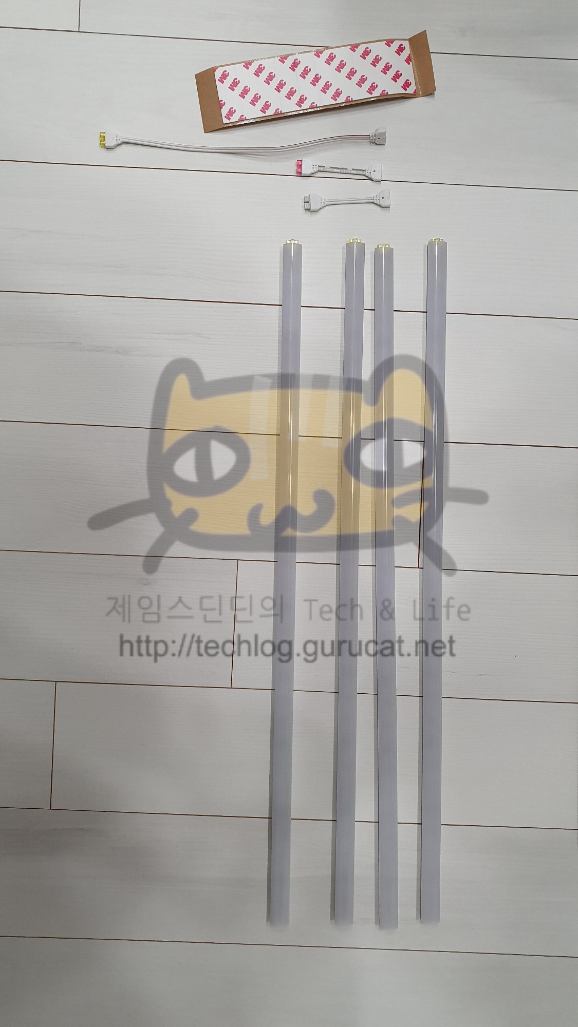 5) 책장의 LED스틱 조명 앞에 목재 부착