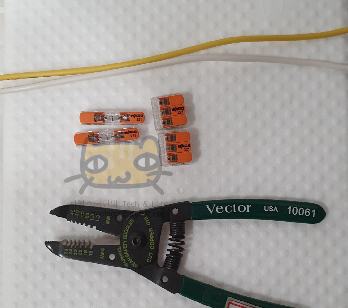 전선 두개 꼬아준뒤 전기테이프로 쥐꼬리 뱅뱅 감아 가며 작업하면 너무 번거롭고,