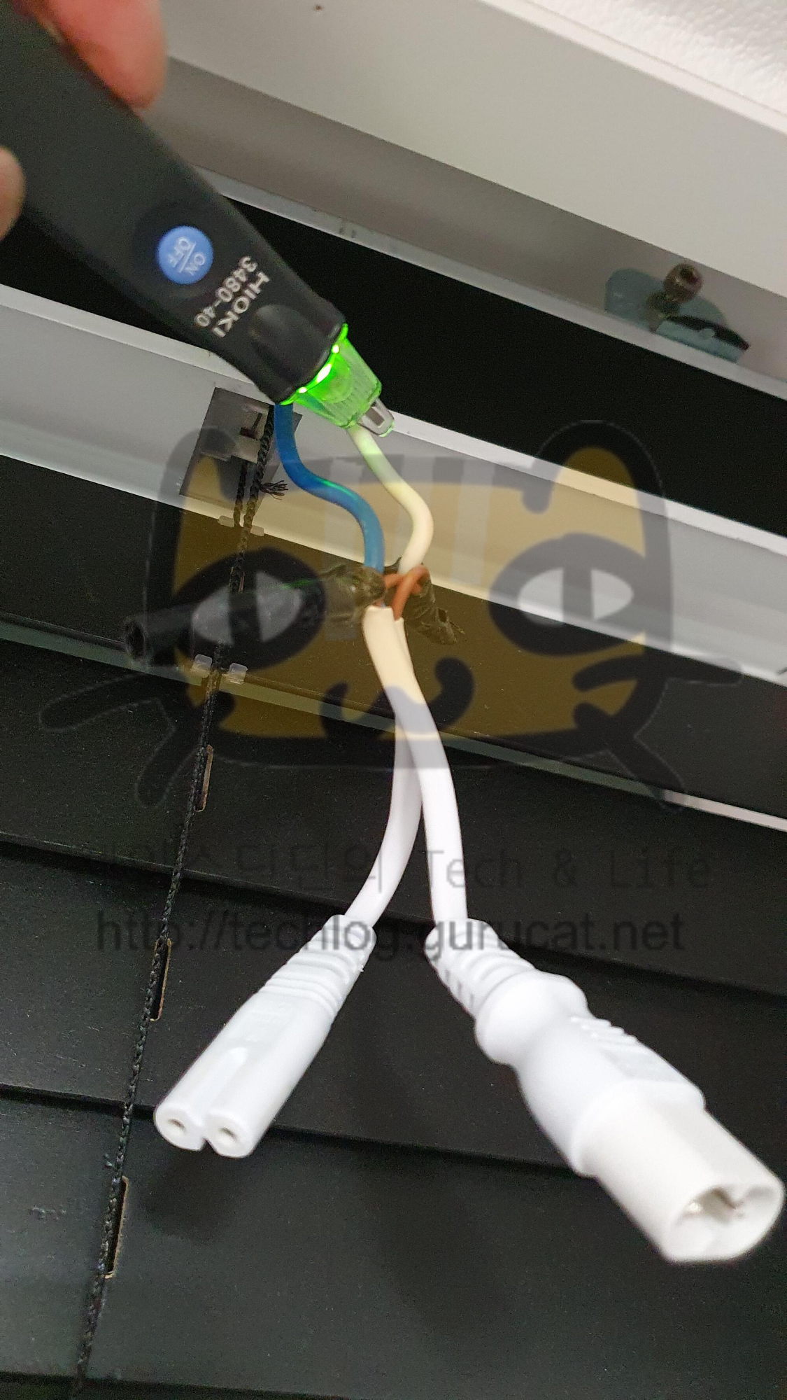 먼저 T5 LED 조명이 연결되어있던 선을 조명에서 분리했다.
