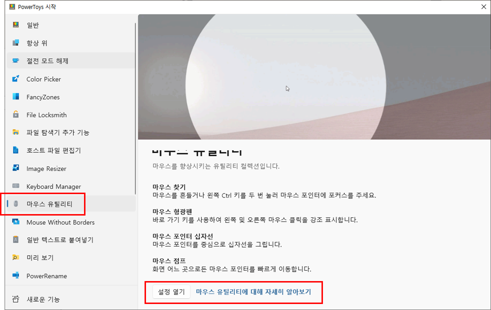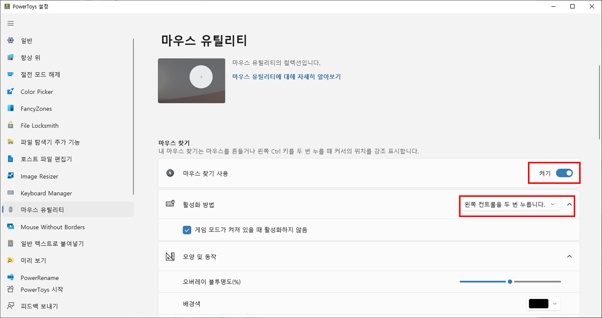 참고 : https://learn.microsoft.com/ko-kr/windows/powertoys/mouse-utilities