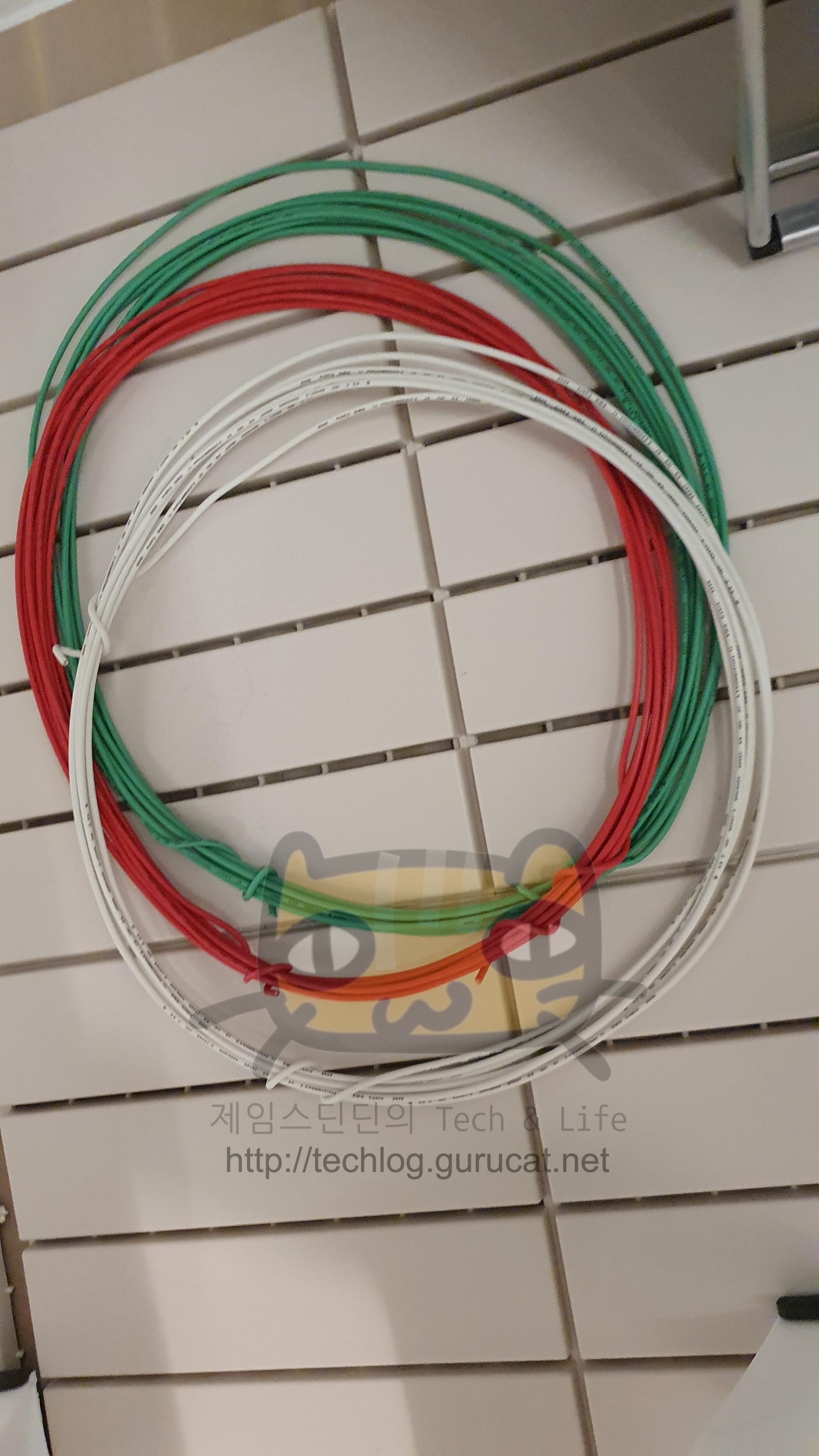 그리고 제일 중요한 전원. 초록색 빨간색 흰색 전선 부분이 전원공급 전기이다.