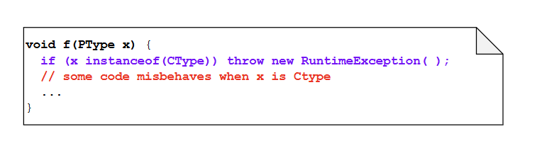 이때, f( )의 담당개발자는 이런 오동작을 방지하기 위하여, 인자 x가 CType인지를 확인하는 코드를 넣기를 원할 수도 있다.