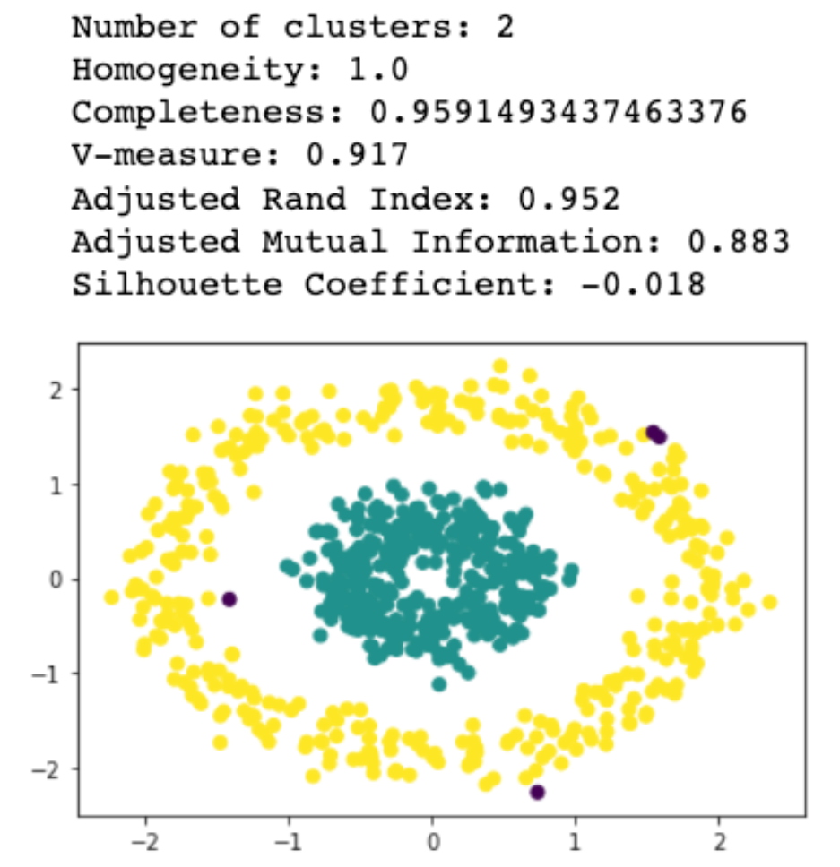 하지만 이러한 알고리즘은 K-Means와 같은 매개변수 클러스터링 알고리즘에 비해 조정이 다소 어렵다는 점을 지적하고 싶습니다. DBSCAN이나 Level Set Tree의 엡실론(ε)과 같은 매개변수는 K-Means의 클러스터 수 매개변수에 비해 추론하기가 직관적이지 않기 때문에 이러한 알고리즘에 적합한 초기 매개변수 값을 선택하기가 더 어렵습니다.